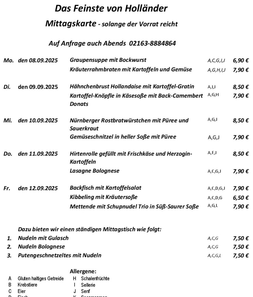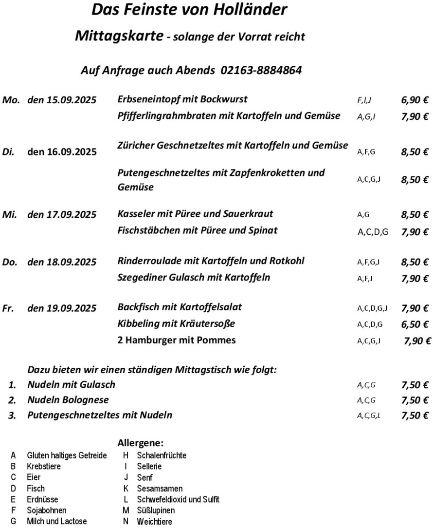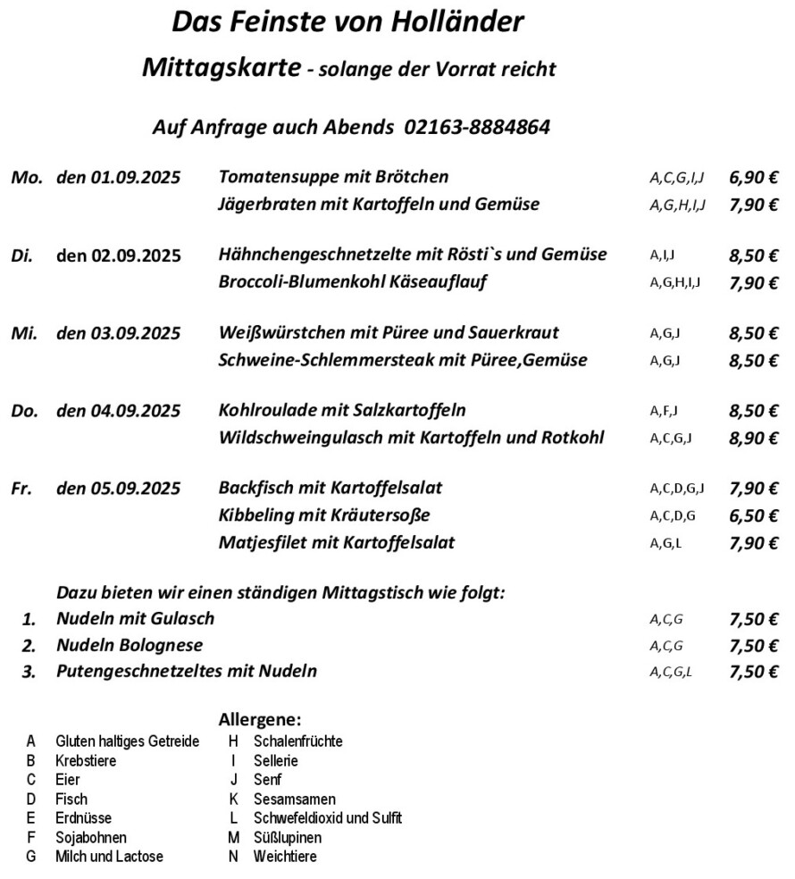 Mittagskarte - Das Feinste von Holländer